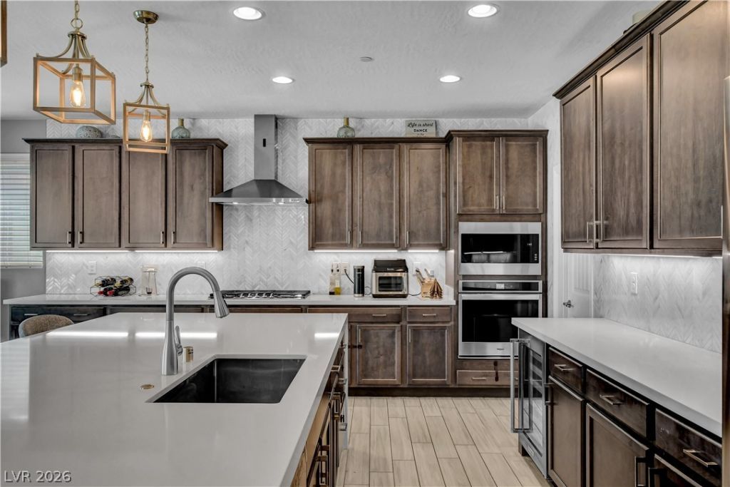 Highly upgraded two-story home nestled at the end of a large cul-de-sac on a MASSIVE lot. You'll be captivated by the spacious and open great room, seamlessly connecting to the kitchen with its stunning quartz countertops, modern appliances, walk in pantry, and a generous island for casual dining. Bedroom 5, conveniently located downstairs, is ideal for guests or extra family members. Upstairs features a generous size loft with built in shelves, Two primary bedrooms, each with its own ensuite bathroom, and two additional bedrooms with a jack-n-jill bathroom. The home also features a mudroom w/ a large walk-in closet for storage, a huge backyardfeaturing synthetic grass for easy maintenance, a refreshing pool, covered patio, and a large side yard. With a spacious three-car garage, energy-efficient features, and a rare sized lot, this Inspirada gem is ready to welcome you home.